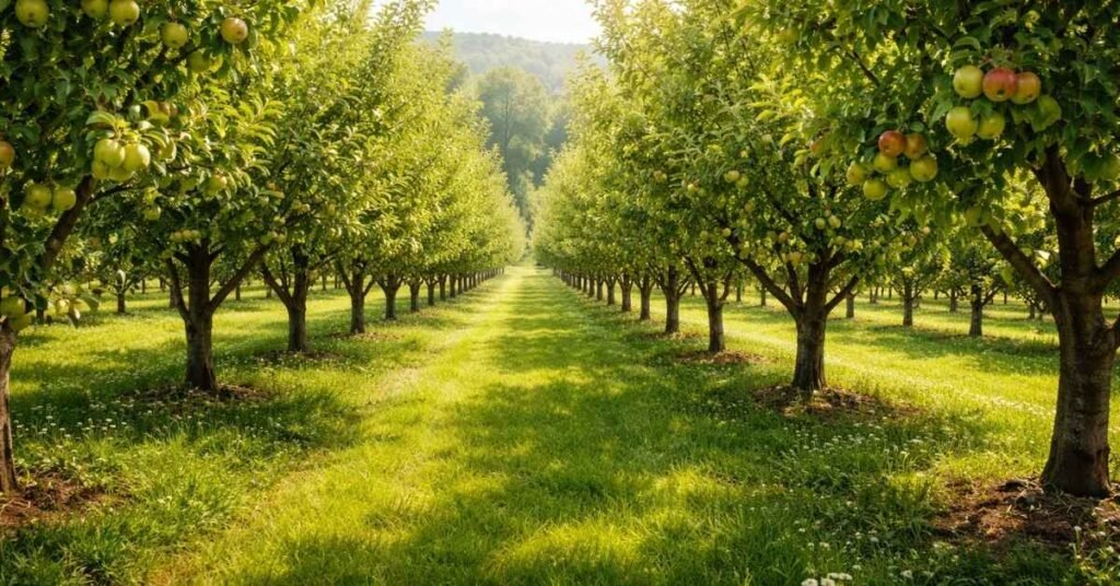 If you visit in April, you won’t see any fruit to eat. However, the view is still magical! This is when the apple trees are full of pink and white flowers. It looks like a fairyland, but remember—you cannot eat flowers!